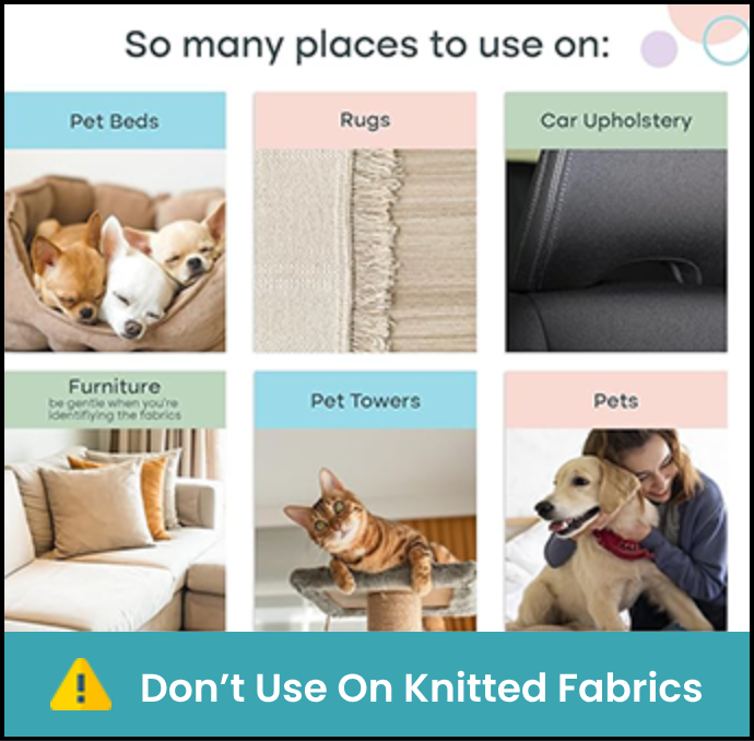 “It works on so many things, my jacket, my carpet, my couch, my fabric headboard, my cat scratcher!”