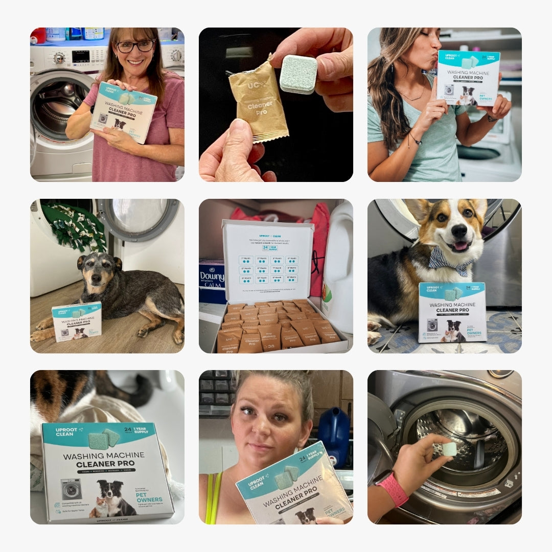 First of all, my dog sheds and I have long hair. After washing both of our laundry, my washer gets full of hair and it also smells. After the first wash with Uproot the hair was gone and so was the smell! I'll definitely be ordering again and I look forward to checking out all of the other products as well! Thank you Uproot for making this chore a breeze!!!